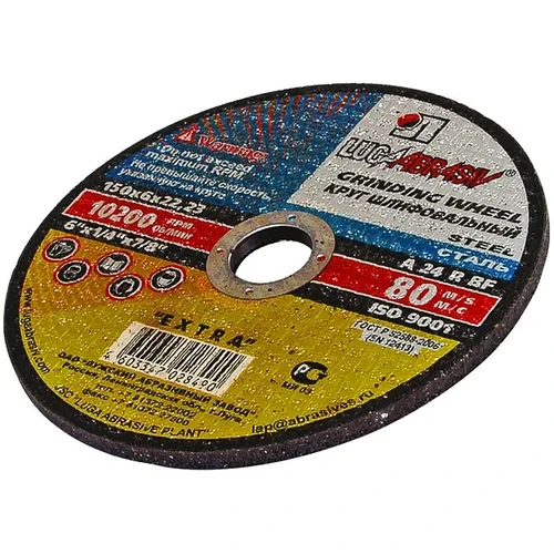 Шлифовальный (обдирочный, зачистной) диск по металлу . Для повседневного использования. Предназначен для шлифовки и зачистки деталей, конструкций из различных металлов и сплавов. Диск отрезной обдирной Lugaabraziv (Лужский абразивный завод) для болгарки имеет посадочный диаметр 22,23 мм и предназначен для УШМ, шлифовальных и отрезных машин со шпинделем 22,23 мм.
