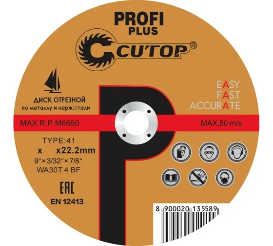 Профессиональный диск отрезной по металлу и нержавеющей стали Т41-230х1,8х22,2 Cutop Profi Plus